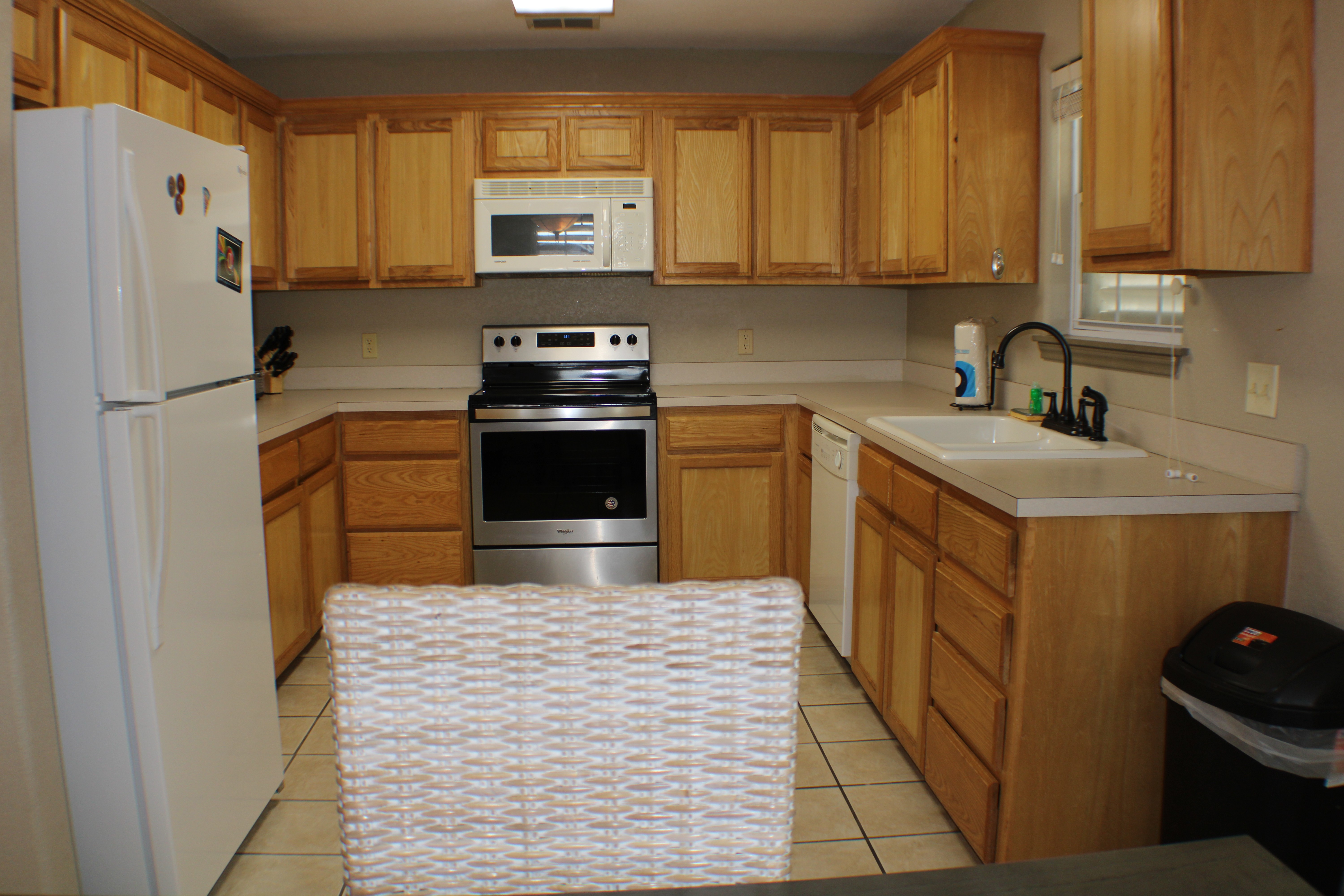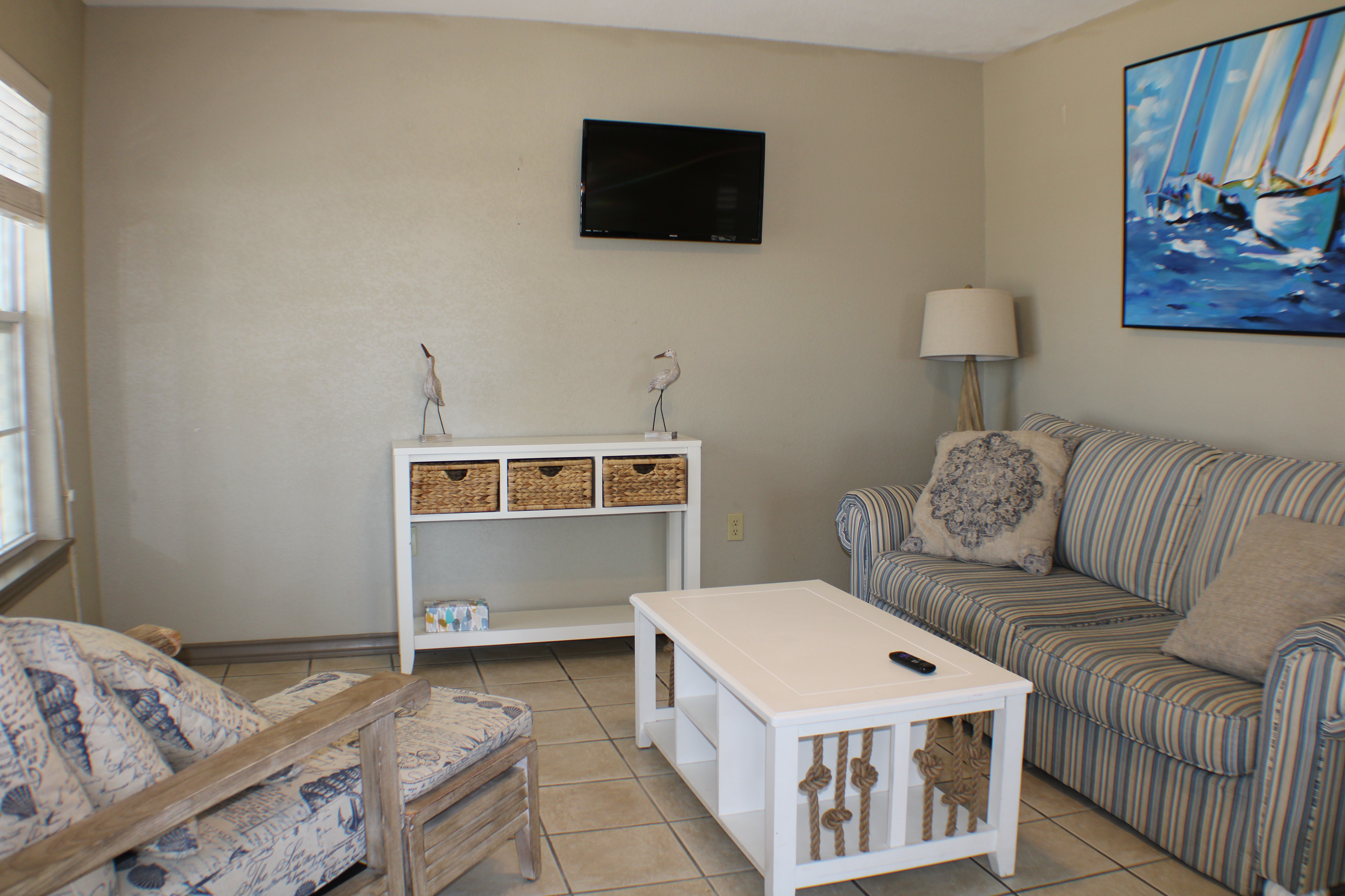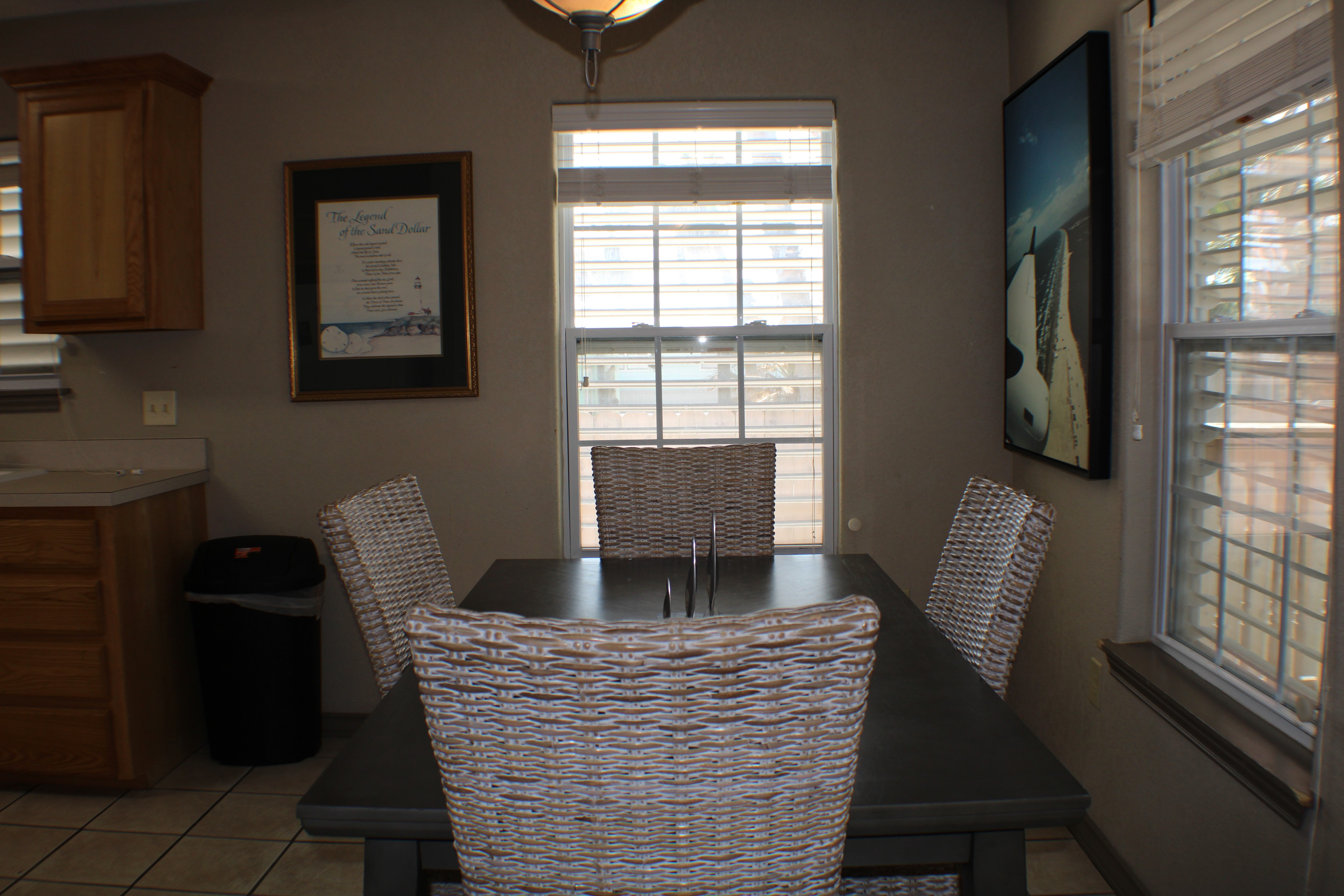 Outside, you'll find a small patio for enjoying the gulf breezes and a fenced SHARED yard that is shared by the complex for your four-legged friends to use. We've just added a shared breezeway for the complex with covered seating and a game area. It's a perfect place to unwind after a day at the beach. PLEASE NOTE: There is 24 hour surveillance in this shared area.
